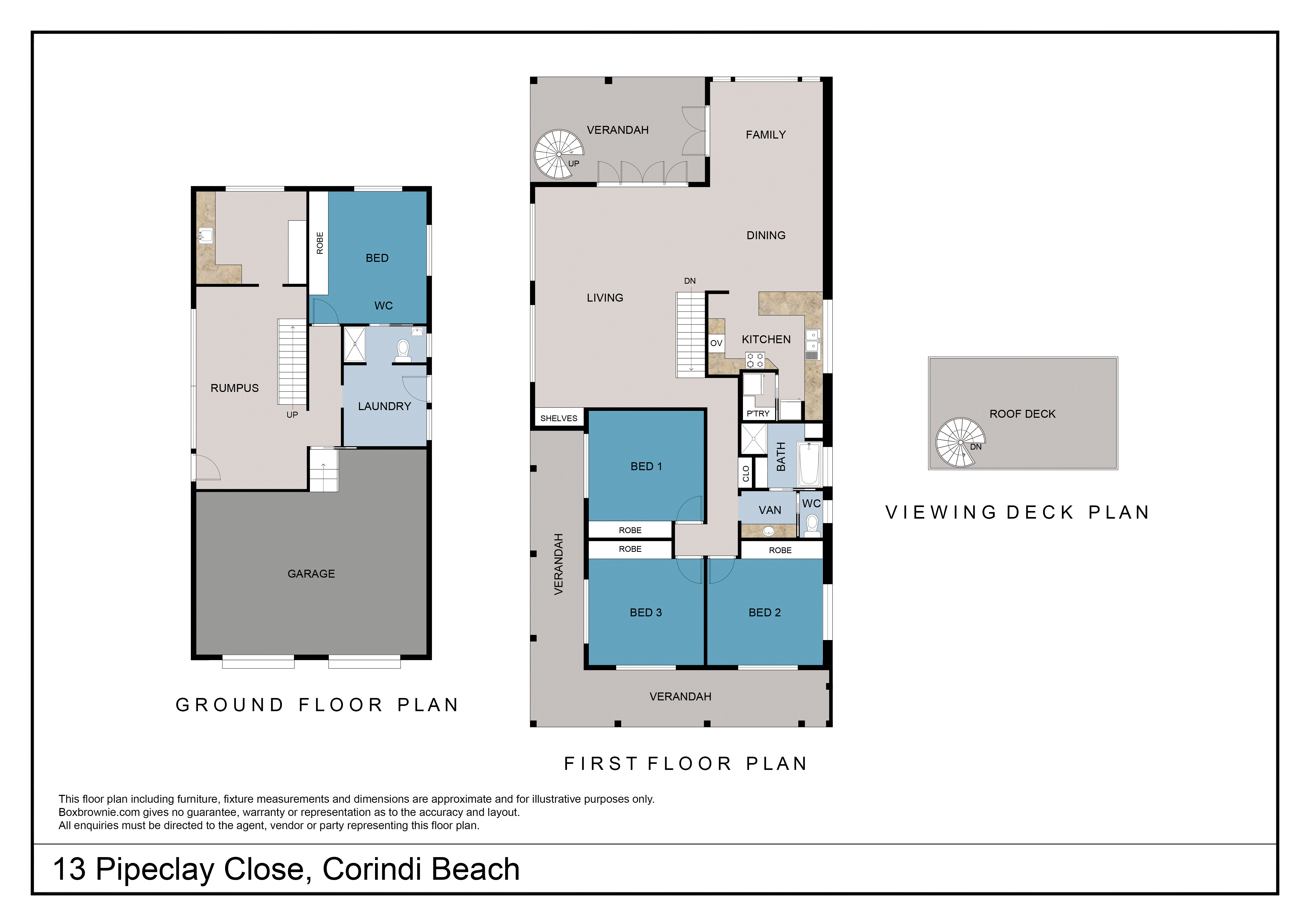 Three good size bedrooms are on this level all complete with built in wardrobes blinds and access to the north east facing deck. The spacious main bathroom is a 3 way design finished with a modern colour palette and bespoke bench seat.