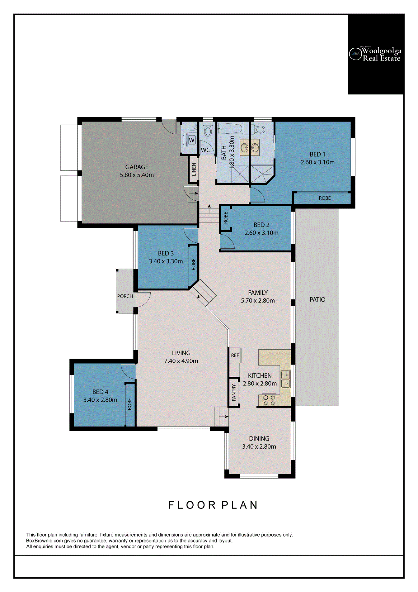 Summer relief continues with all four bedrooms equipped with ceiling fans and built in wardrobes to keep the room tidy. The master bedroom offers additional space and the benefits of a sizeable ensuite. The main bathroom is designed with a shower, bath, and conveniently located next to the separate toilet.